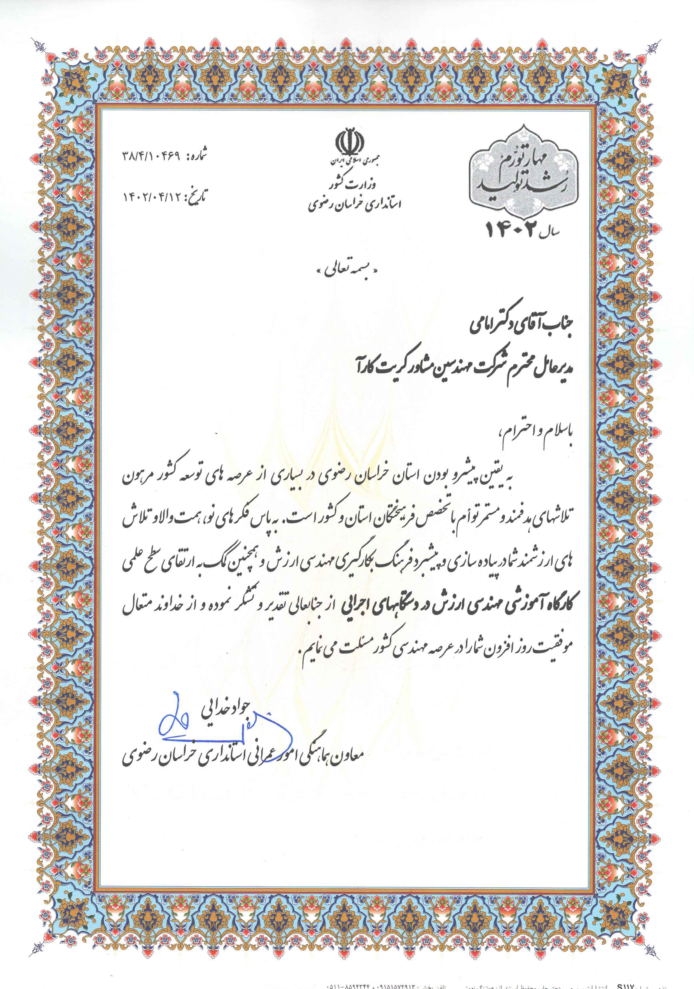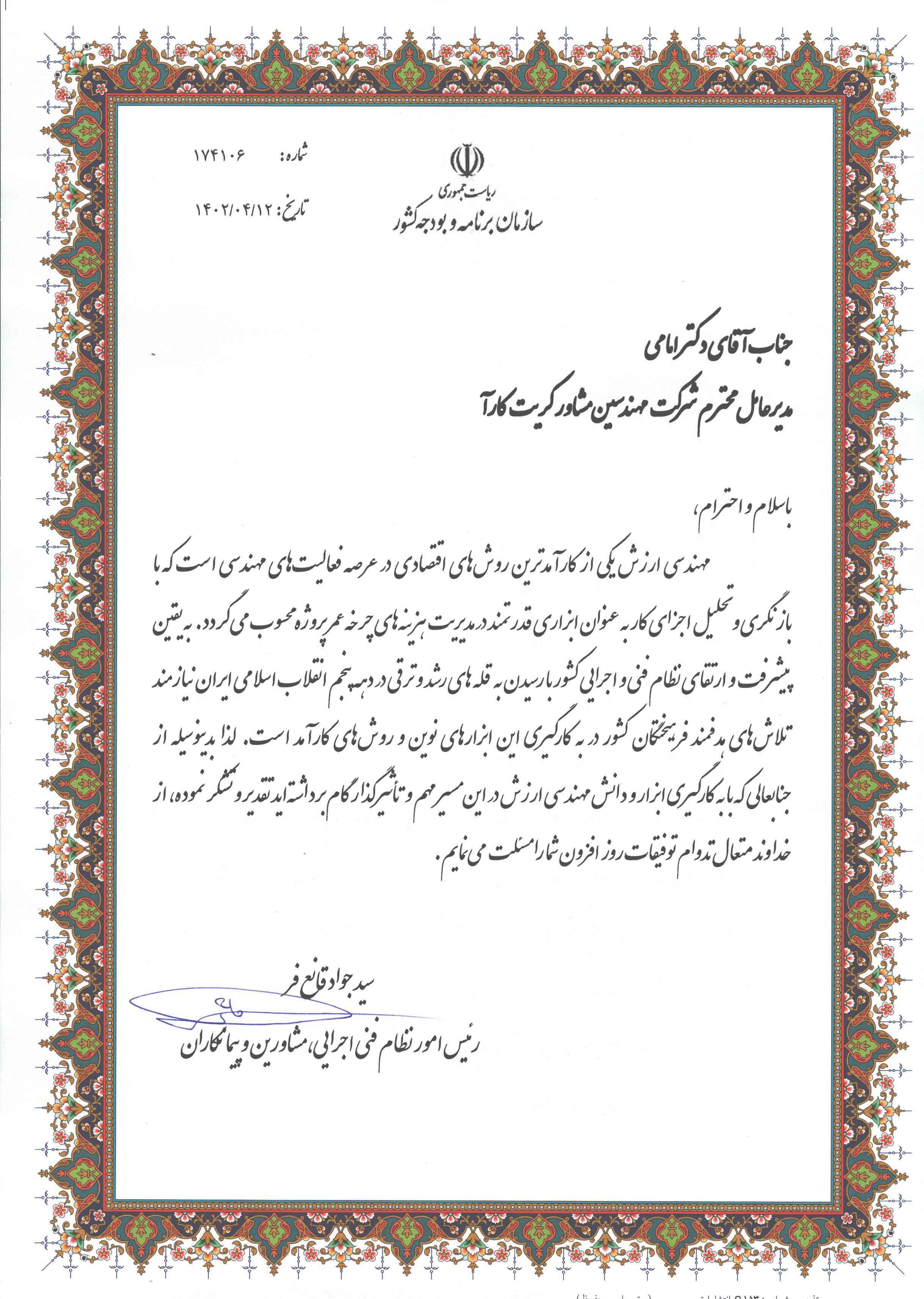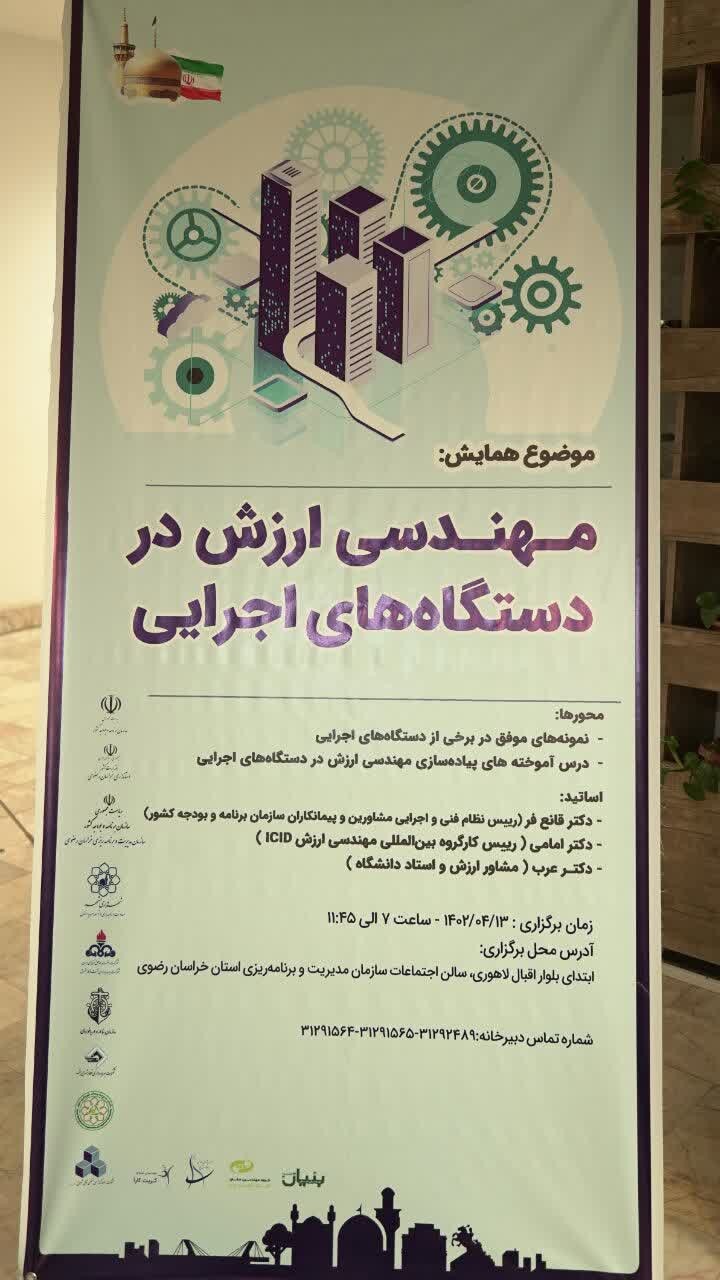 در انتها رئیس سازمان مدیریت و برنامه ریزی استان خراسان رضوی از شهردار مشهد بعنوان مدیر عالی دستگاه پیشرو در مهندسی ارزش تقدیر نمود.