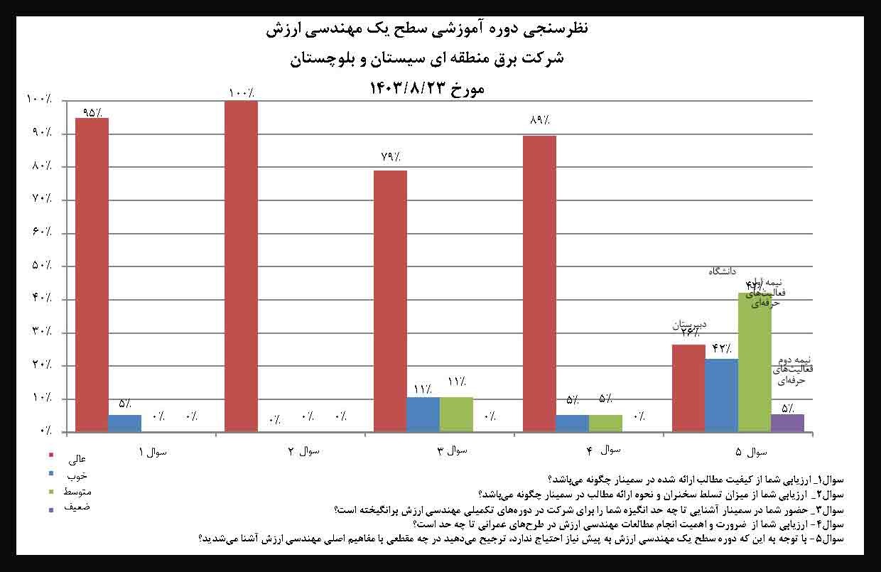 مهندسان مشاور کریت کارا بیش از 400 دوره آموزشی مهندسی ارزش برگزار کرده و ارزیابی شرکت کنندگان از کیفیت مطالب و نحوه ارائه همیشه بسیار مثبت بوده است، در 3 دوره اخیر برگزار شده، دوره سطح یک برق منطقهای سیستان و بلوچستان و دورههای سطح یک و دو مجتمع گاز پارس جنوبی، در ارزیابیهای انجام شده، نحوه ارائه و تسلط مدرس در هر سه دوره 100 درصد عالی ارزیابی شده است.